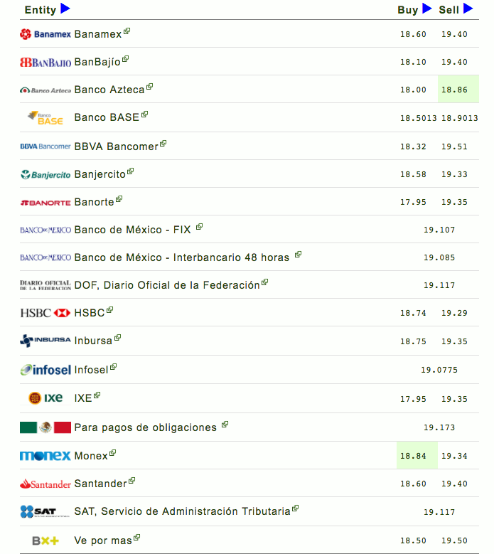 El banco de México (Banxico) fijó en 19.1070 pesos el tipo de cambio para solventar obligaciones denominadas en moneda extranjera pagaderas en el país.