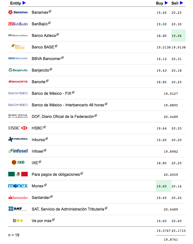 El Banco de México (Banxico) fijó en 19.9127 pesos el tipo de cambio para solventar obligaciones denominadas en moneda extranjera pagaderas en el país.