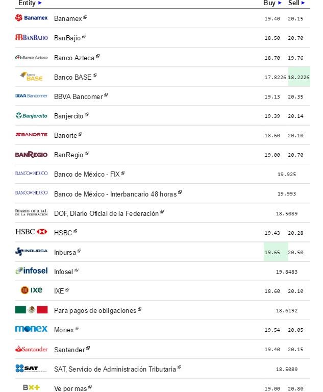 El Banco de México (Banxico) informó que el tipo de cambio para solventar obligaciones denominadas en moneda extranjera pagaderas en el país es de 19.9250 pesos.