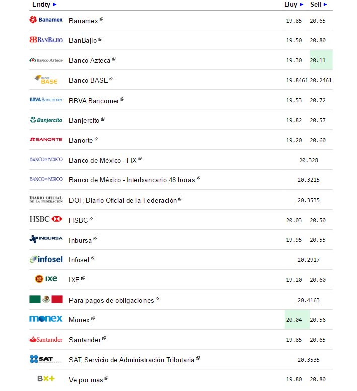 El Banco de México (Banxico) fijó en 20.3507 pesos el tipo de cambio para solventar obligaciones denominadas en moneda extranjera pagaderas en el país.