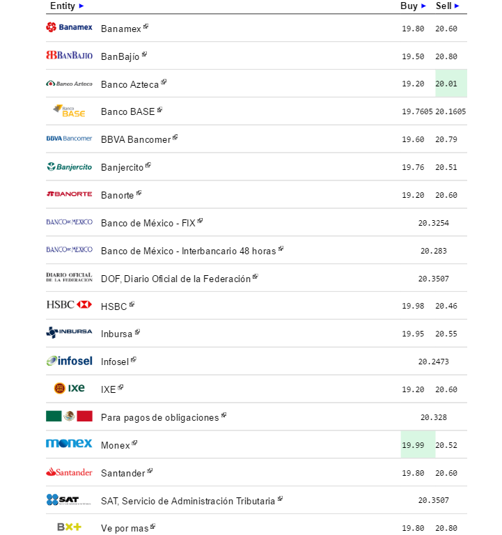 El Banco de México (Banxico) fijó en 20.3254 pesos el tipo de cambio para solventar obligaciones denominadas en moneda extranjera pagaderas en el país.