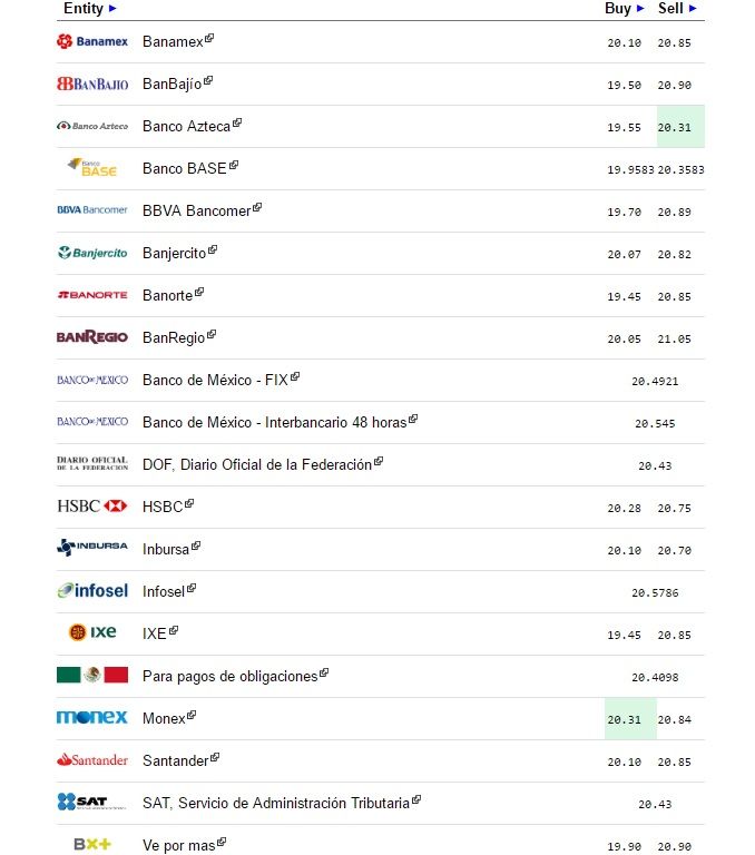El Banco de México (Banxico) informa que el tipo de cambio para solventar obligaciones denominadas en moneda extranjera pagaderas en el país se fija en 20.4921 pesos.