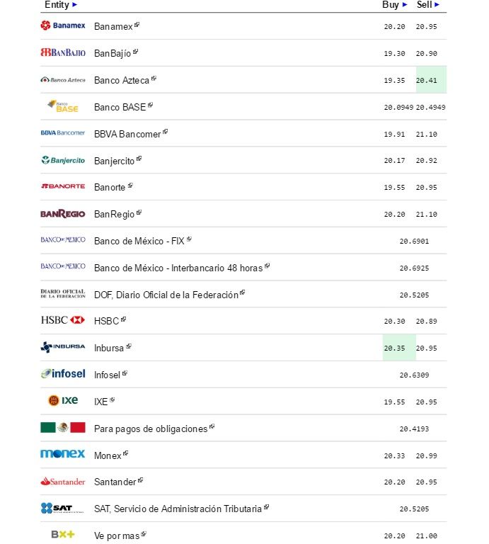 El Banco de México (Banxico) fijó el tipo de cambio para solventar obligaciones en moneda extranjera pagaderas en el país en 20.6901 pesos.