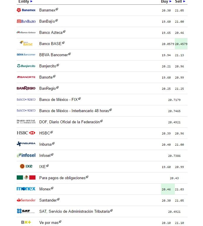 El Banco de México (Banxico) informó que el tipo de cambio para solventar obligaciones denominadas en moneda extranjera pagaderas en el país se fijó en 20.7179 pesos.