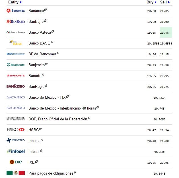 El Banco de México (Banxico) fijo el tipo de cambio para solventar obligaciones denominadas en moneda extranjera pagaderas en el país en 20.7314 pesos.