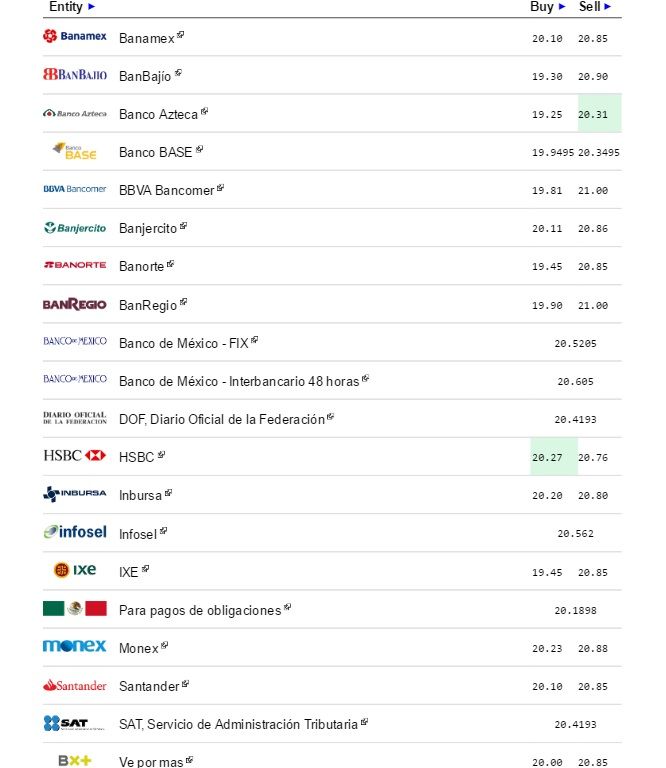 El euro, a su vez, se ofreció en un precio máximo de 22.26 pesos, tres centavos menos comparado con el cierre previo, en tanto, la libra esterlina se vendió en 25.94 pesos y el yen alcanzó un precio de venta de hasta 0.215 pesos.