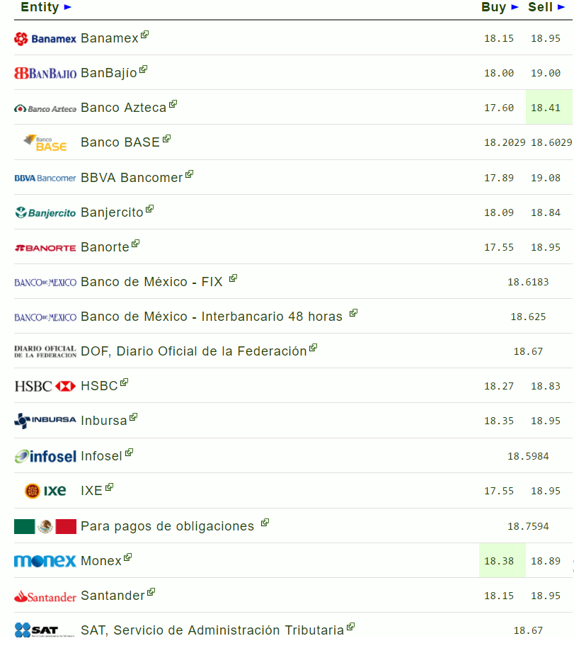 El Banco de México (Banxico) fijó en 18.6183 pesos el tipo de cambio para solventar obligaciones denominadas en moneda extranjera pagaderas en el país.