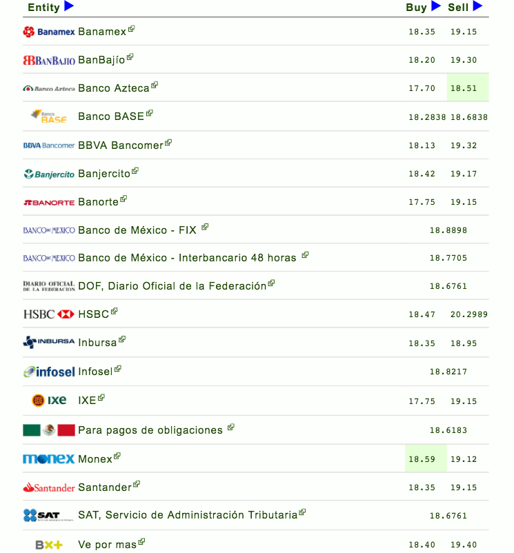 El Banco de México (Banxico) fijó en 18.8898 pesos el tipo de cambio para solventar obligaciones denominadas en moneda extranjera pagaderas en el país.