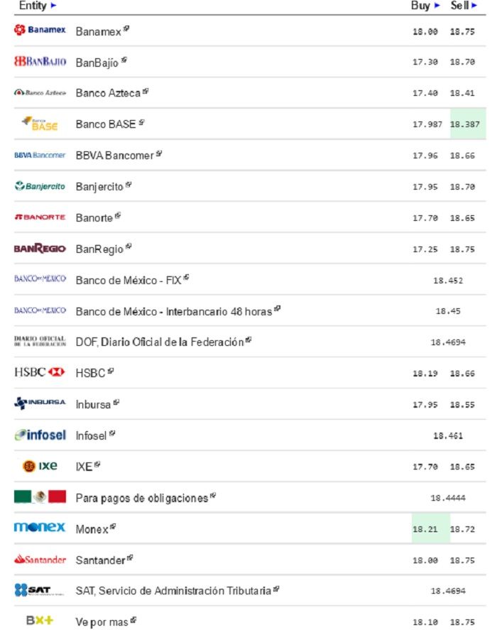 Al concluir las operaciones cambiarias en bancos de la capital, el dólar libre perdió cinco centavos y se ofertó en un precio máximo de 18.75 pesos respecto al cierre previo, y se compró en un mínimo de 17.94 pesos.