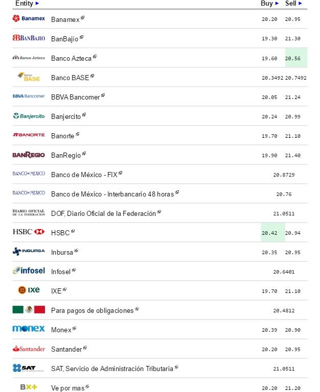 El Banco de México (Banxico) fijó el tipo de cambio para solventar obligaciones denominadas en moneda extranjera pagaderas en el país en 20.8729 pesos.