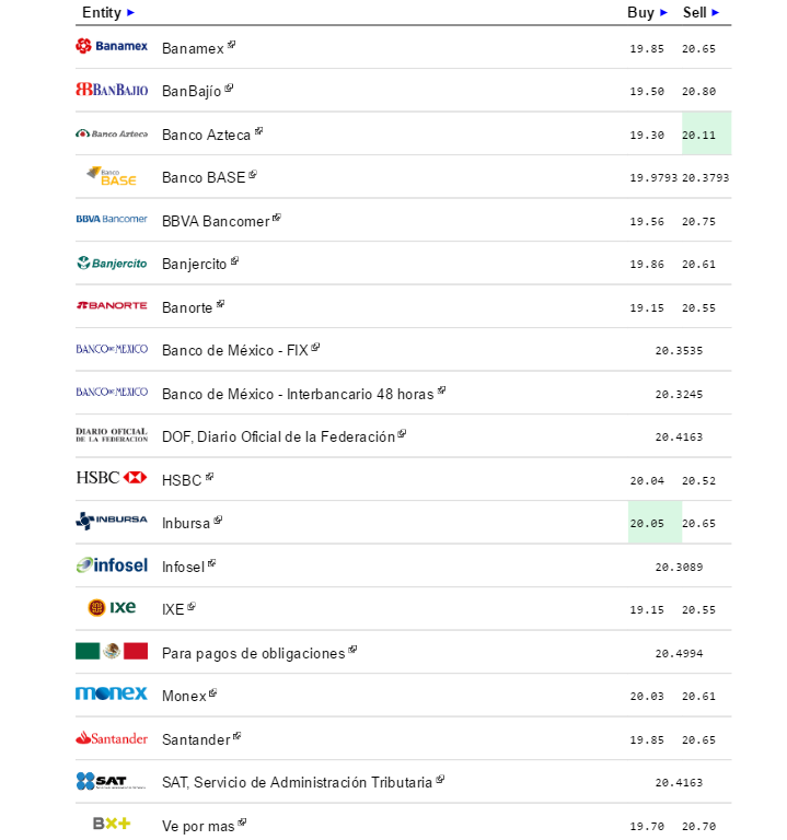 Por otra parte, el Banco de México (Banxico) fijó en 20.3535 pesos el tipo de cambio para solventar obligaciones denominadas en moneda extranjera pagaderas en el país.