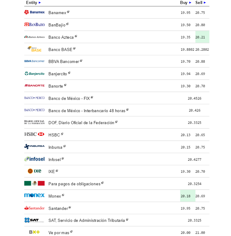 El Banco de México (Banxico) fijó en 20.4526 pesos el tipo de cambio para solventar obligaciones denominadas en moneda extranjera pagaderas en el país.