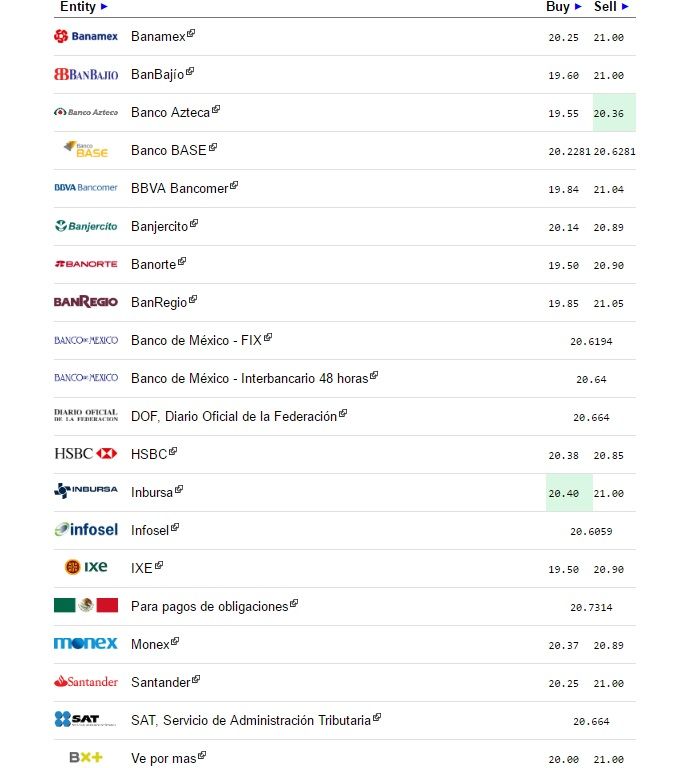 El Banco de México (Banxico) fijó el tipo de cambio para solventar obligaciones denominadas en moneda extranjera pagaderas en el país en 20.6194 pesos.