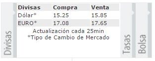 Por su parte, el euro se vendió en un máximo de 17.65 pesos, lo que representó un alza de dos centavos comparado con la sesión previa; mientras que el yen se ofreció hasta en 0.129 pesos.