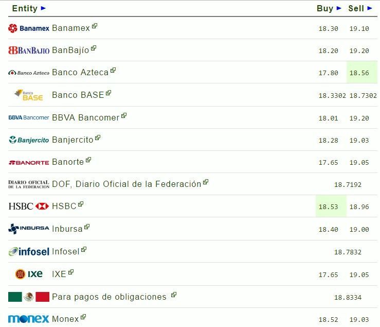 Y se adquiere en un precio mínimo de 17.65 pesos. Se prevé que el tipo de cambio cotice entre 18.78 y 18.85 pesos por dólar
