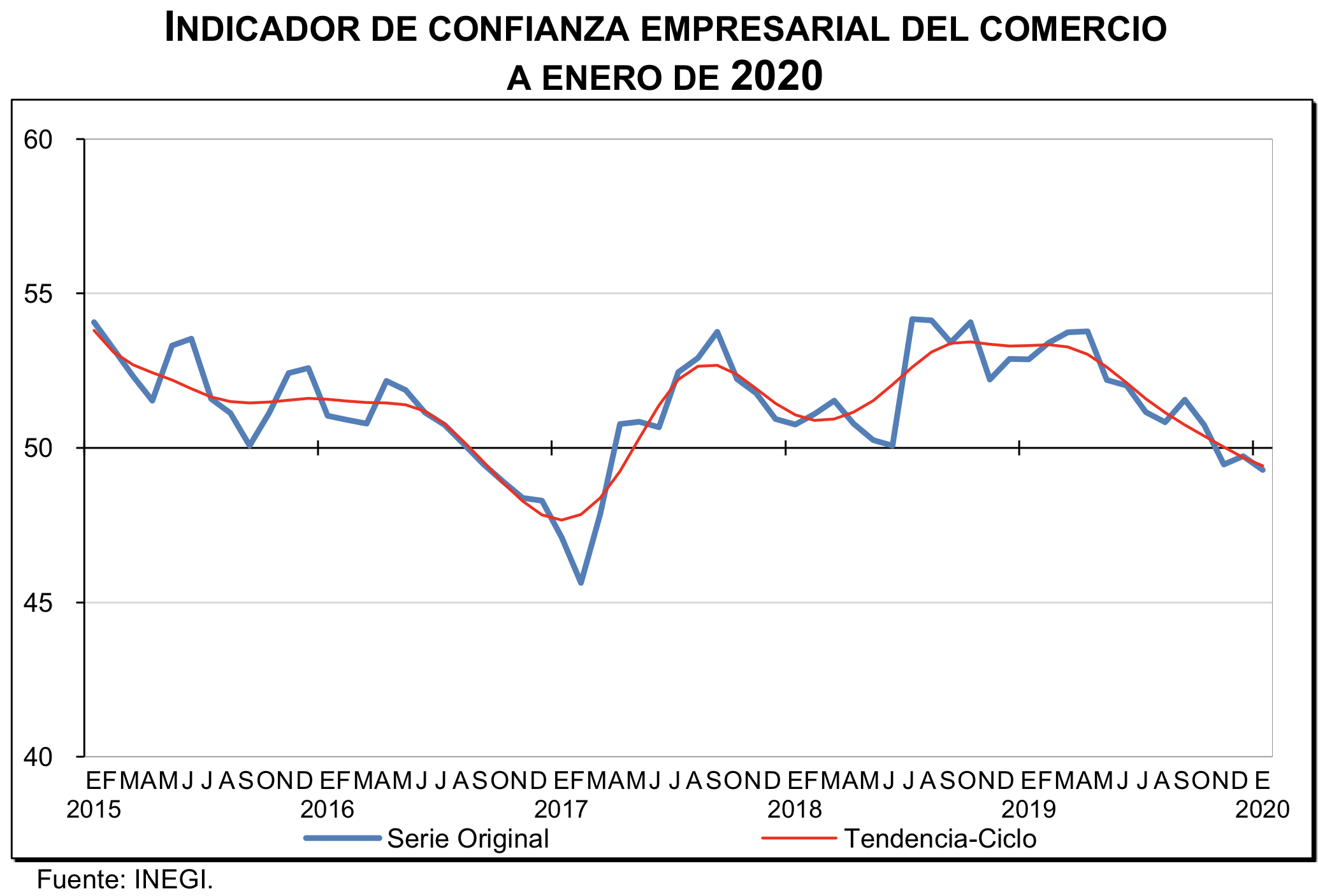 Indicador de Confianza Empresarial del Comercio a Enero de 2020. Datos del INEGI.
