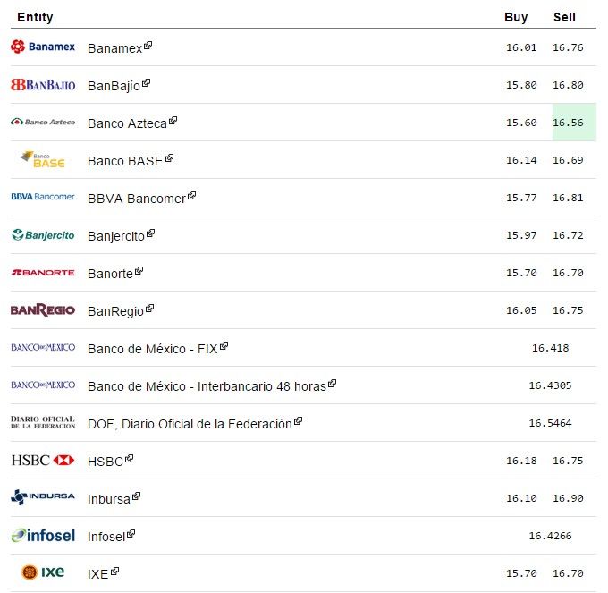 El dólar libre se ofreció en bancos del Distrito Federal hasta en 16.76 cuatro centavos menos respecto al término de la sesión del día de ayer, que se adquirió en un mínimo de 16.01 pesos.