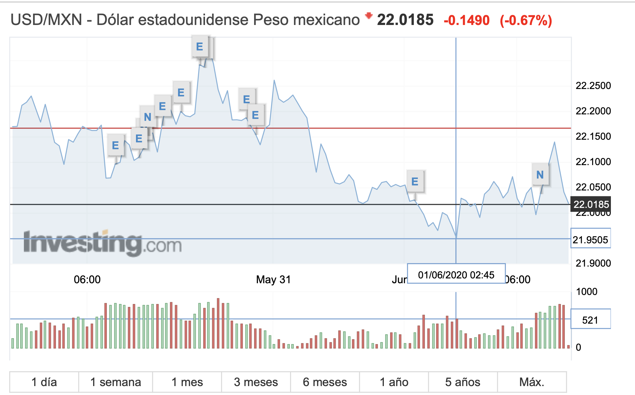 En operaciones internacionales llegó a ganar hasta las 21.9392, su mejor nivel desde el 16 de marzo, señala la agencia Forbes México.