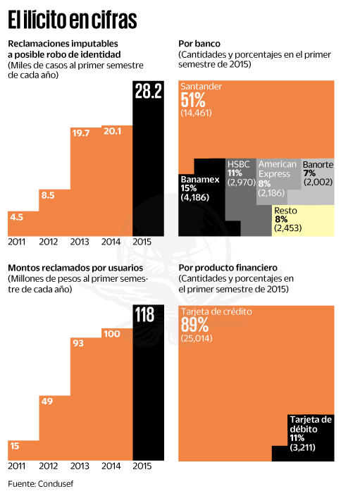 “En 2014 y lo que llevamos de 2015, hemos visto un incremento del robo de identidad, con correos electrónicos apócrifos y llamadas a tarjetahabientes. Especialmente en tarjetas de crédito”, declaró Ángel González y señaló que una de las principales causas que permiten a los defraudadores cometer este delito es el desconocimiento de los usuarios que siguen otorgando sus datos.