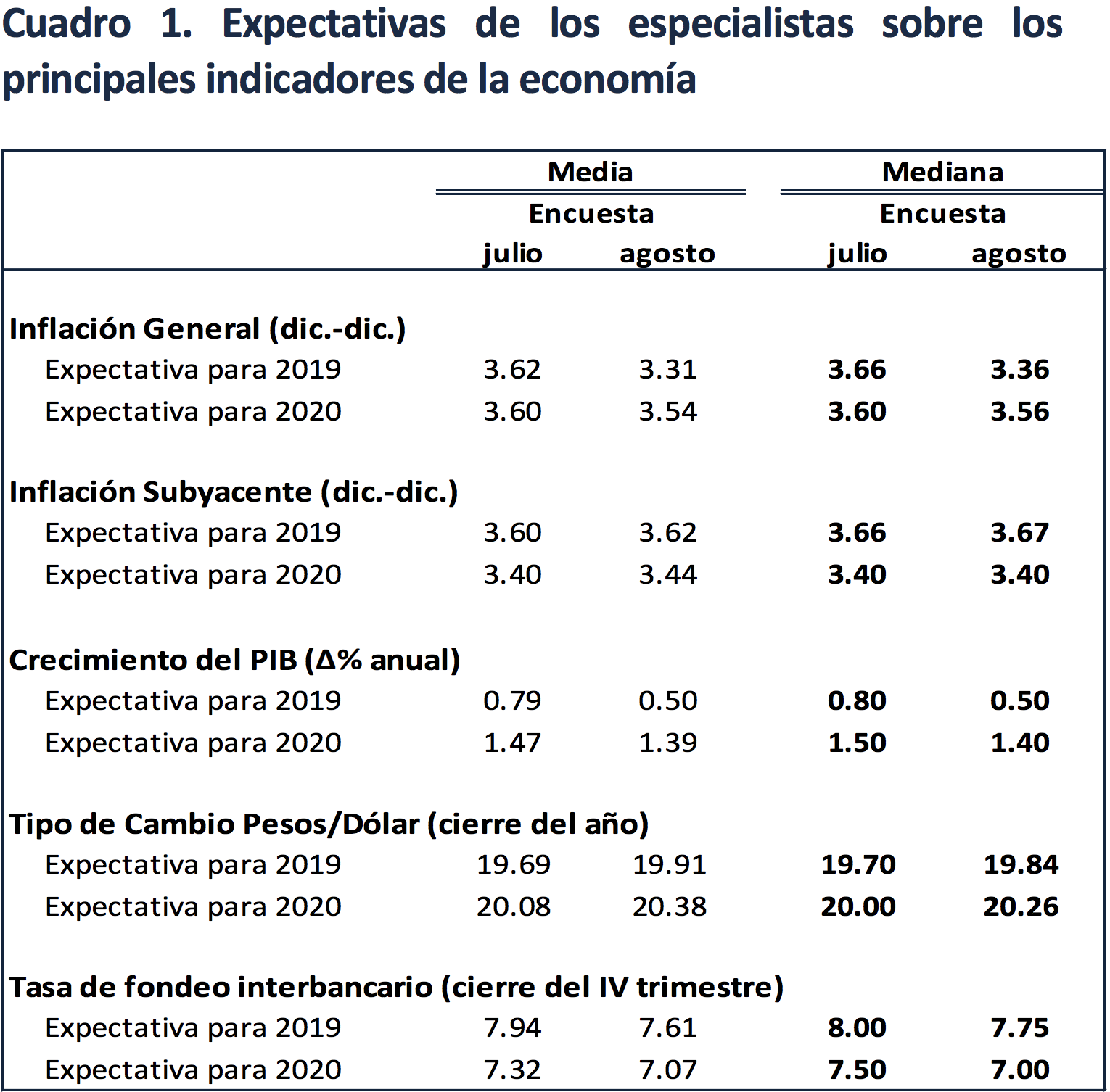 Además, los especialistas además redujeron la expectativa de crecimiento para 2020, modificándola de 1.47 a 1.39 por ciento.