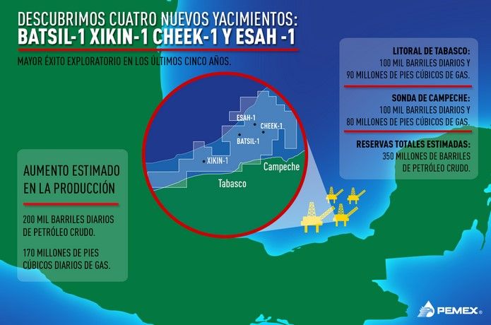 Los campos petroleros tienen ventajas pues están cerca de infraestructuras ya existentes de Pemex, además de que alentarán la exploración de aguas someras en el Golfo de México.