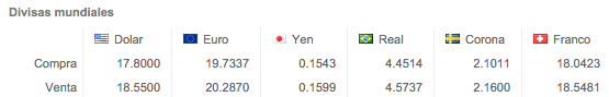 Instituciones bancarias de la Ciudad de México ofrecen el dólar libre hasta en 18.60 pesos, y lo compran en un mínimo de 17.39 pesos por unidad. Por su parte, el euro se vende hasta en 20.79 pesos; mientras que el yen se oferta en un máximo de 0.159 pesos. El valor del dólar es el … Continued