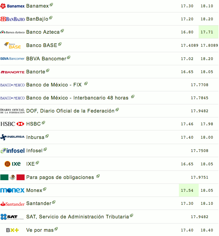 Ante ese escenario, sucursales bancarias de la capital del país vendieron el dólar estadounidense hasta en 18.26 pesos, es decir, cuatro centavos menos en comparación con el cierre previo, y lo compraron en un precio mínimo de 16.65 pesos.