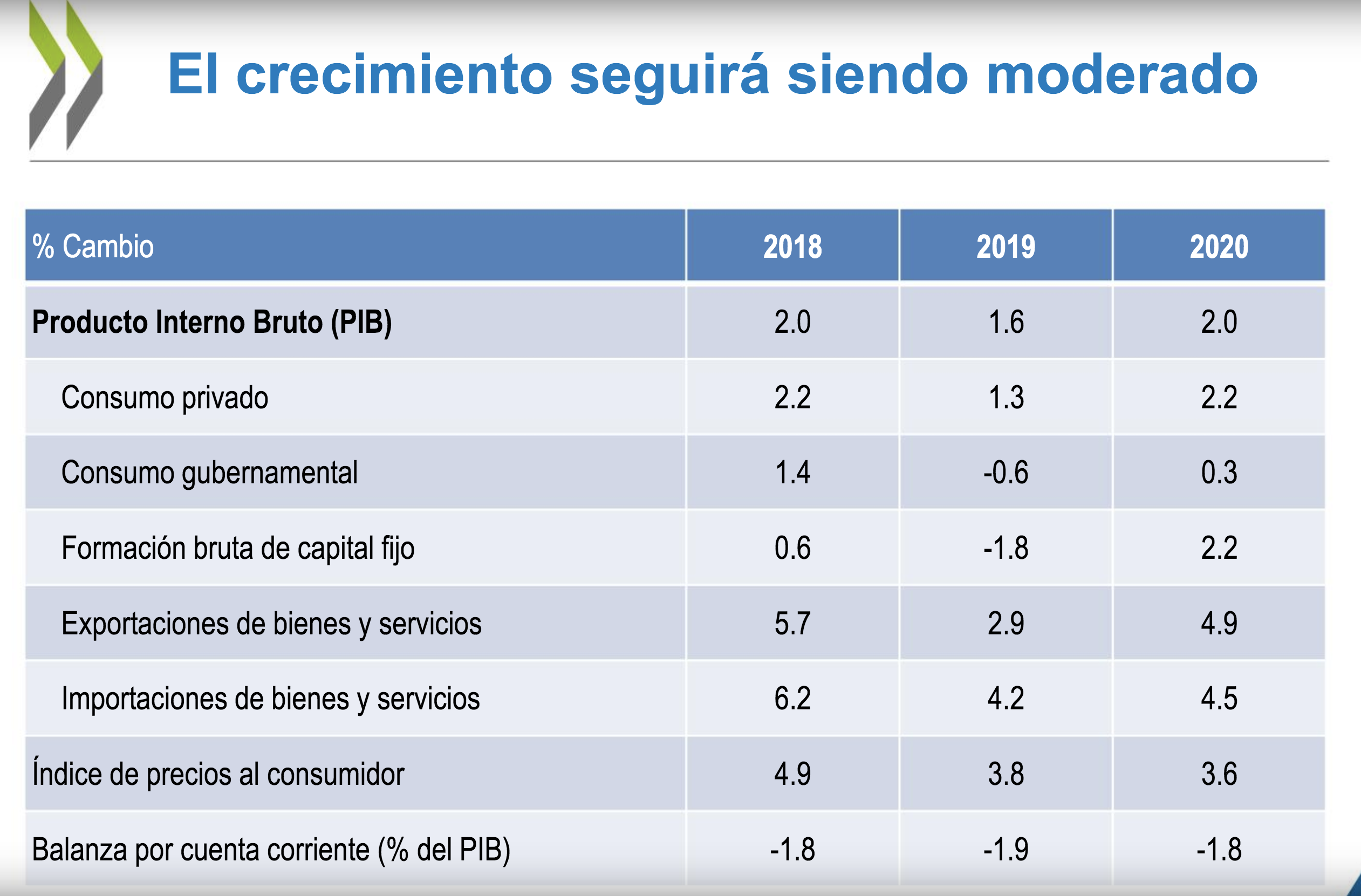 De acuerdo con el “Estudio Económico de México“, presentado este jueves, dicho organismo bajó su estimación de México para 2019 de 2 a 1.6 por ciento, y para el 2020 de 2.3 a 2 por ciento.