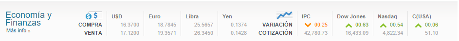 Por su parte, en los bancos el dólar registra un máximo de 17.19 pesos a la venta.