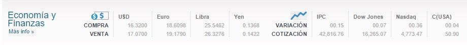 El dólar libre se vende en un precio máximo de 17.19 pesos, con un ascenso de dos centavos respecto al cierre de ayer, y se compra en un mínimo de 16.20 pesos en ventanillas bancarias del Distrito Federal.