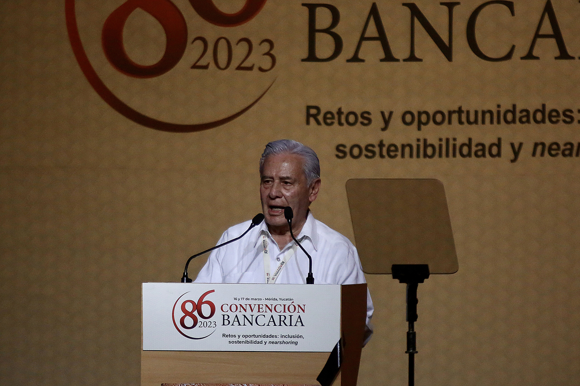 El titular de la Comisión Nacional Bancaria y de Valores (CNBV), Jesús de la Fuente habla en el marco de la inauguración de la 86 Convención Bancaria en hoy, en la ciudad de Mérida, estado de Yucatán (México). EFE/Lorenzo Hernández