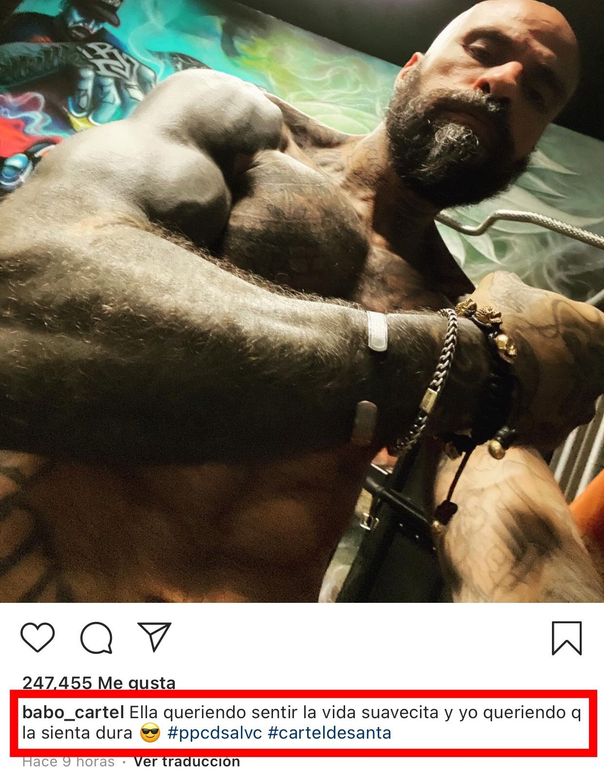Tiempo después Babo publicó una foto donde se muestra su abdomen desnudo y con un mensaje usando las palabras de la influencer, con una clara connotación sexual.
