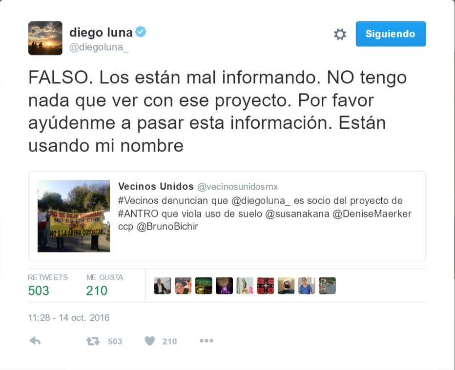 #Vecinos denuncian que @diegoluna_ es socio del proyecto de #ANTRO que viola uso de suelo @susanakana @DeniseMaerker ccp @BrunoBichir pic.twitter.com/t8jbmyBEKM