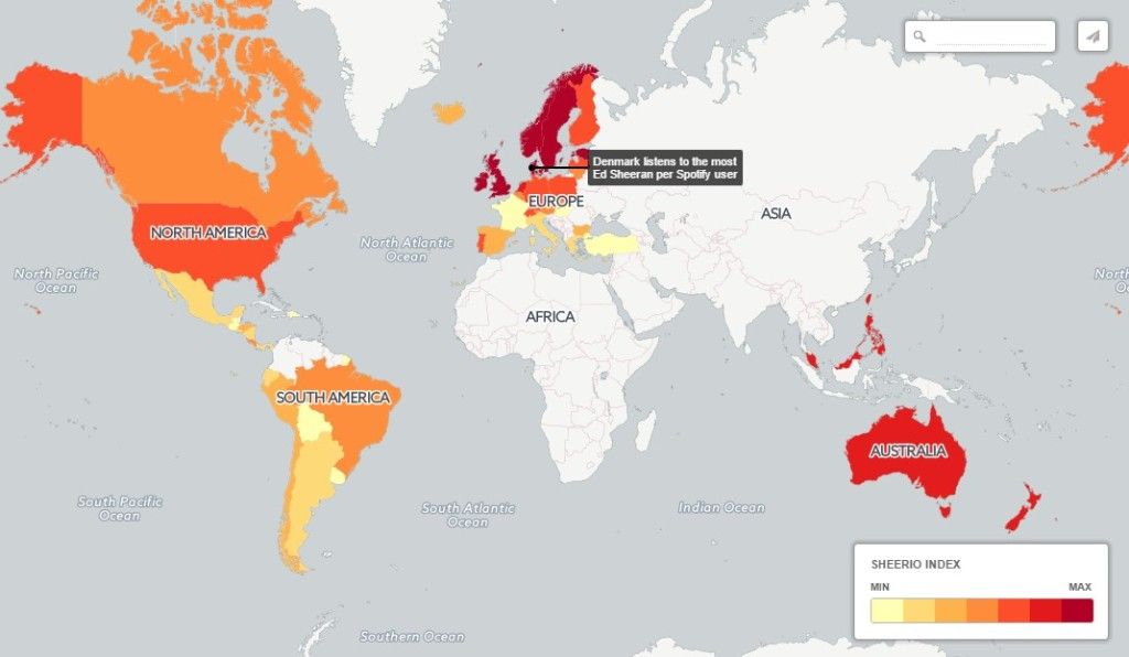 Con motivo de la marca alcanzada por Sheeran, Spotify creó El Índice Sheerio, el cual muestra la cantidad de aficionados que tiene el cantante en el mundo.