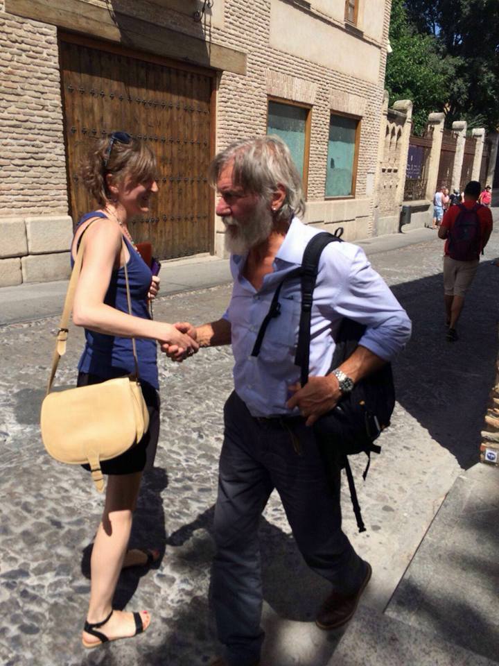 Con una poblada barba, encuentran en calles de Toledo tomando unos días de vacaciones a Harrison Ford acompañado de su esposa