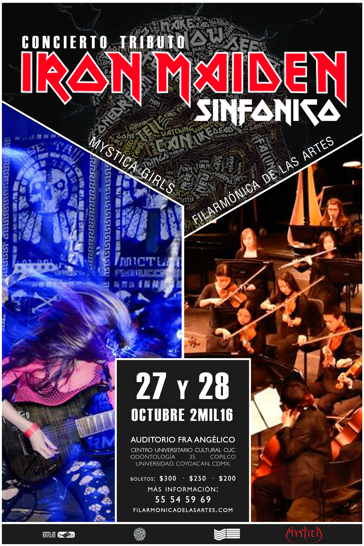 Los temas “Wasted years”, “Run to the hills”, “The number of the beast” y “The Trooper” son algunos de los cuales la banda Mystica Girls y la Filarmónica de las Artes interpretarán en el Homenaje Sinfónico a Iron Maiden, en el Auditorio Fra Angélico, el próximo 27 y 28 de octubre.