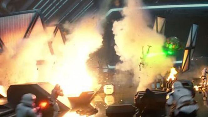 Otra escena muestra al actor Domhnall Gleeson interpretando a ‘El General’, y con el aparece un ‘chrometrooper’ que posiblemente sea el ‘Capitán Phasma’, interpretado por Gwendoline Christie.