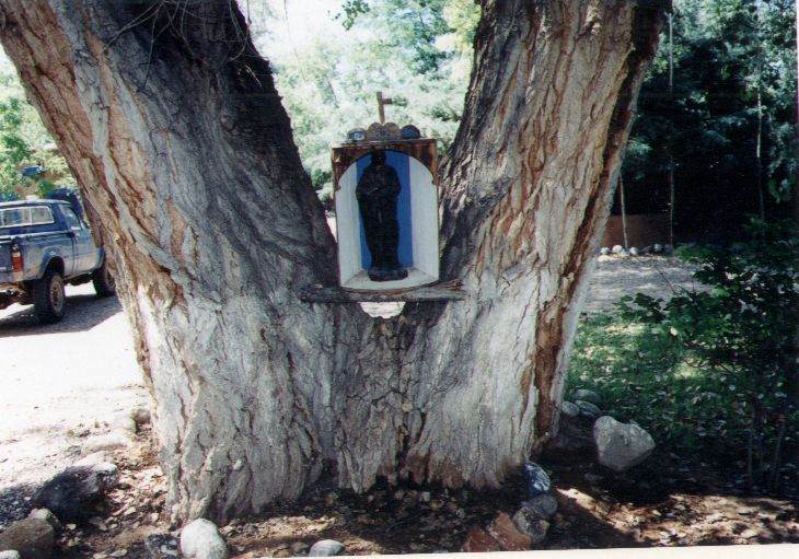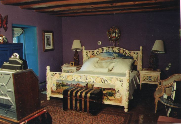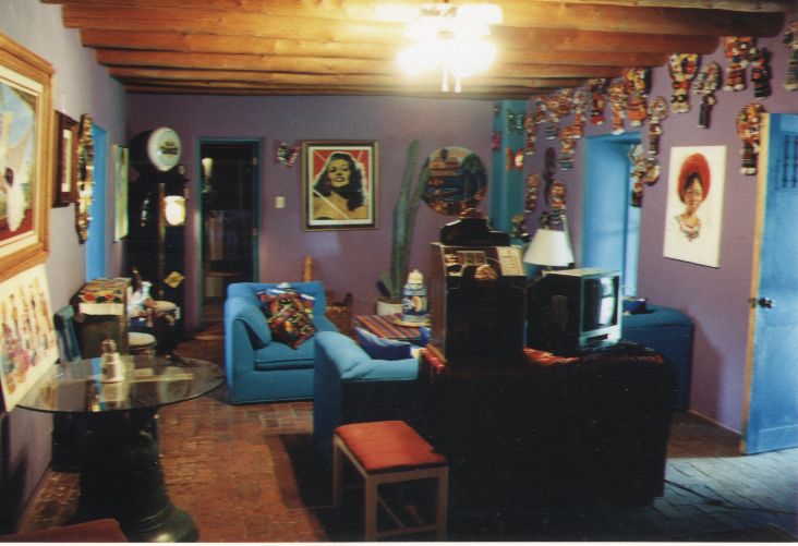 El toque de Juan Gabriel sobre la propiedad puede apreciarse en las múltiples imágenes de santos colocadas en diversos rincones de edificaciones y patios, y un cuadro con la imagen sosteniendo a uno de sus hijos, colocado en la sala de la casa principal.