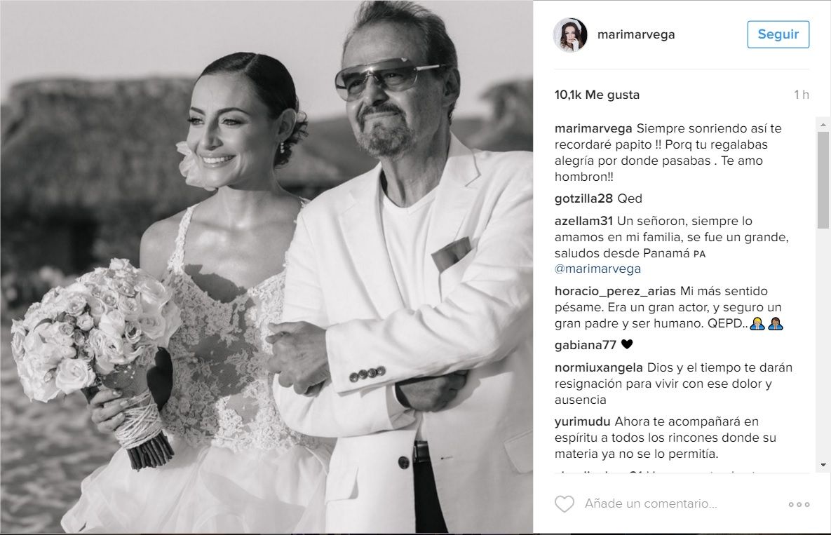 Tras la muerte del actor, Marimar Vega publicó una emotiva foto en Instagram donde señaló cómo recordará a su papá y con un “te amo hombrón”