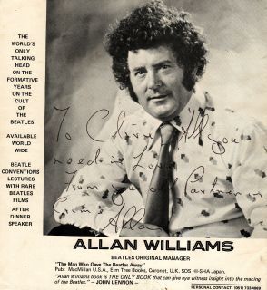 Williams publicó un libro de memorias titulado: “Allan Williams, el hombre que dejó ir a los Beatles”. En 2010 expresó sentirse orgulloso por haber sido una pequeña pieza en la rueda del grupo más famoso del mundo.