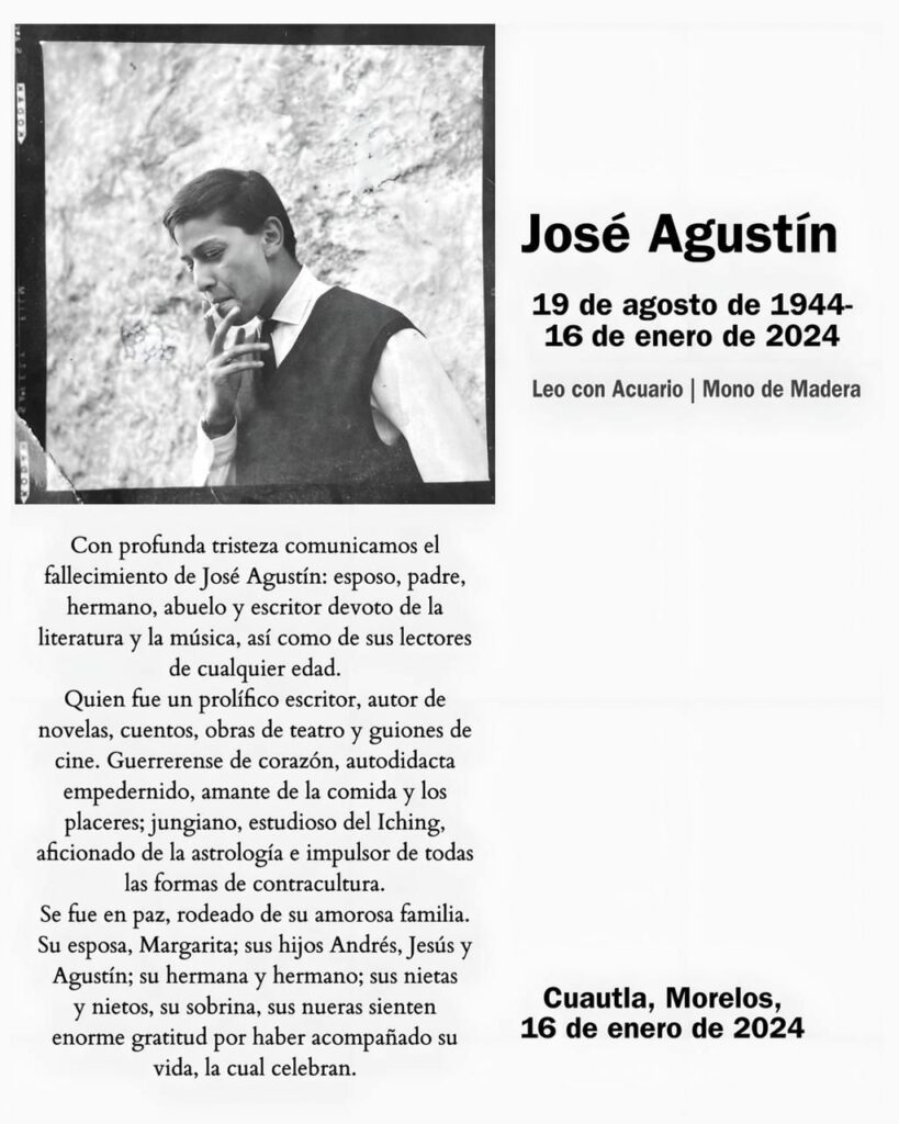 Murió el escritor José Agustín a los 79 años - muerte-del-escritor-jose-agustin-819x1024