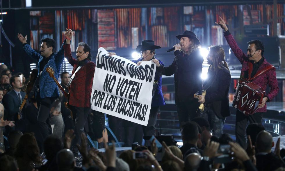 Maná ganó el premio a mejor álbum de pop/rock por “Cama incendiada”. Fher, vocalista de la banda, pidió a los latinos que viven en Estados Unidos votar en las próximas elecciones presidenciales. “De 50 millones de habitantes, el segundo país donde más se habla español es aquí en los Estados Unidos. Es el segundo país con más habla hispana en todo el mundo. Eso quiere decir que hay que usar nuestro poder, hay que ejercer el voto, hay que votar por la gente que nos va a dar más calidad a los latinos, a los candidatos. Usen su fuerza latinos”, dijo.
