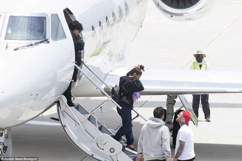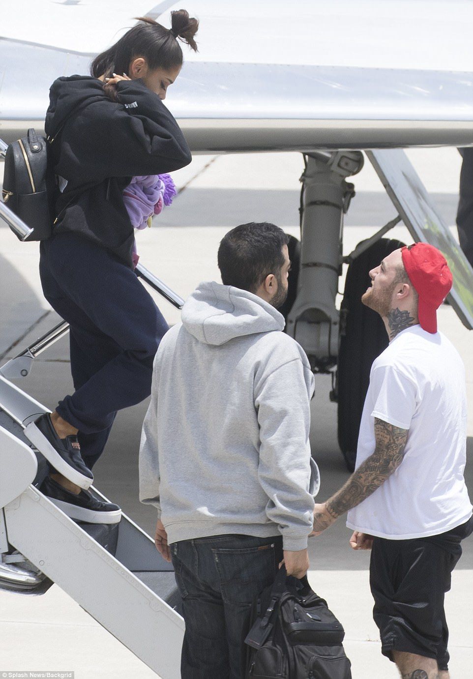 Ariana Grande presentaba huellas de haber llorado y se veía triste al bajar de un avión privado en Boca Ratón, Florida