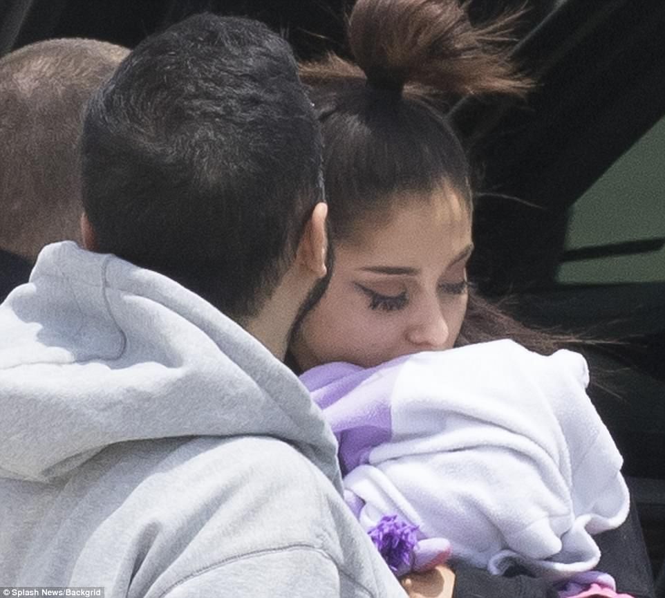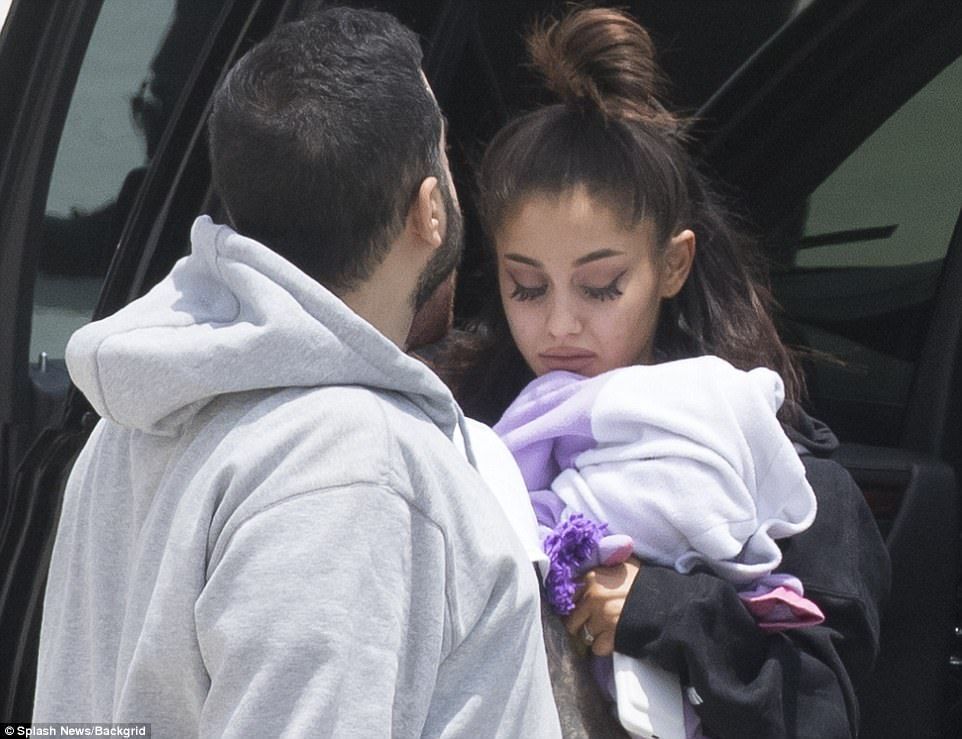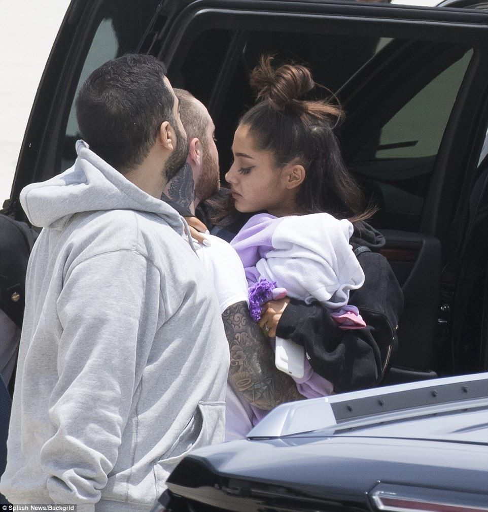 La actriz y cantante lucía huellas de haber llorado y se notaba desanimada al regresar a Estados Unidos, donde la esperaba su novio para confortarla y darle un beso, además de saludar a Joan, la madre de Ariana, antes de subir a una camioneta que la llevara a la casa de su familia, en una comunidad cercana.