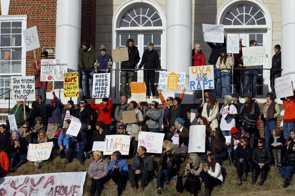 Protestas en la Universidad de Virginia por las violaciones en el campus. Foto de El País