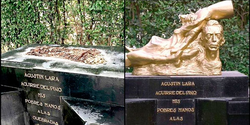 Vianey Lárraga, viuda de Agustín Lara, informó que personal de la SEGOB retiró el busto de su lugar habitual porque buscaban robarlo