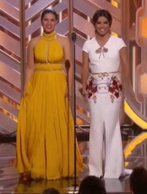 Gervais también abordó el tema de la inmigración durante la velada: América Ferrera y Eva Longoria anunciaron el premio a John Hamm como mejor actor en una serie de drama por su trabajo en “Mad Men”, luego que el maestro de ceremonias las presentara como dos personas a las que el precandidato presidencial republicano Donald Trump se moría por deportar.