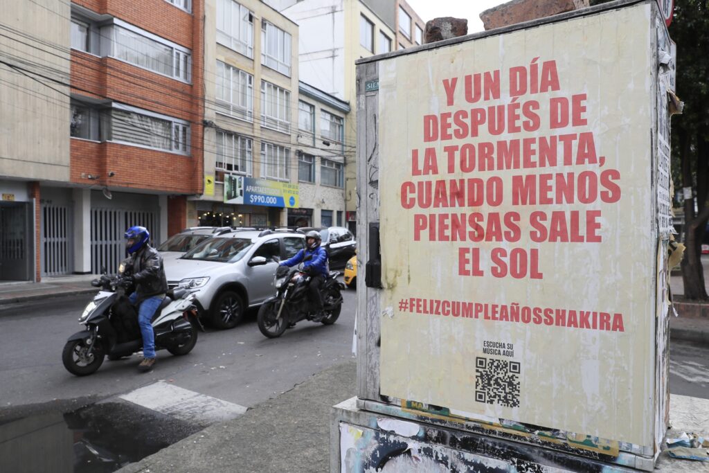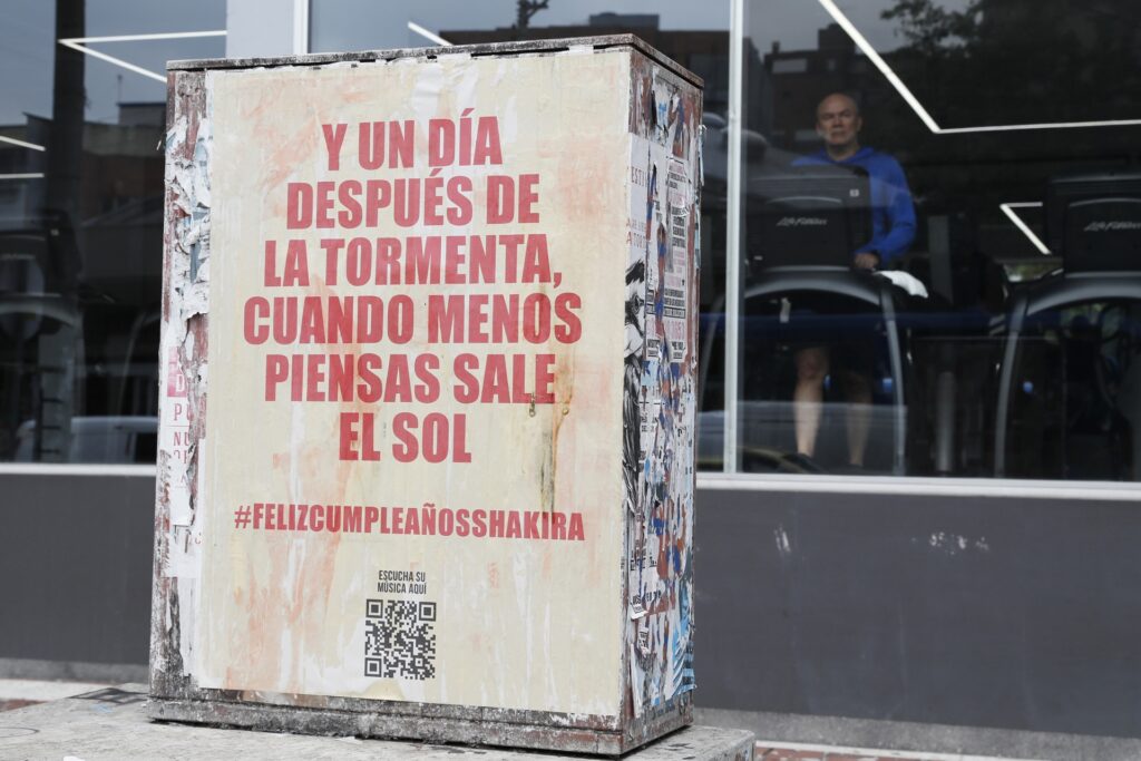Estos carteles con los que amaneció empapelada una parte de la capital colombiana también incluían un código QR que, al leerlo, llevaba a una lista de reproducción con los mayores éxitos de la barranquillera como ´Hips Don’t Lie´, ´Antología´ o ´Pies Descalzos´.