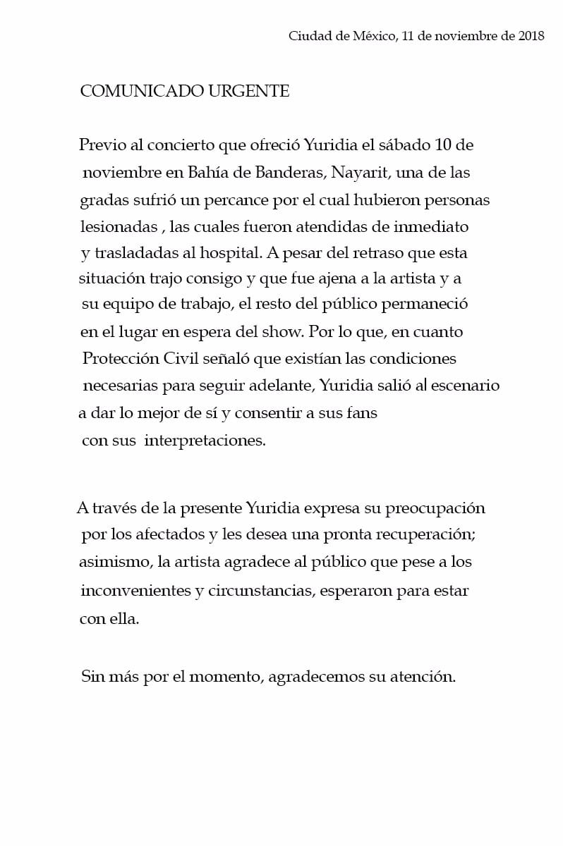 #Video Cae grada durante concierto de Yuridia - comunicado-yuridia