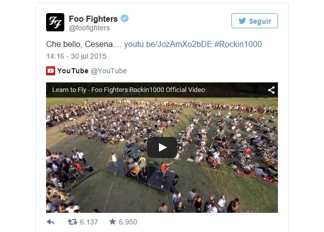 Debido a que se ha difundido masivamente, llegó hasta los integrantes de los Foo Fighters que respondieron en su cuenta de Twitter “qué bonito, Cesena”.